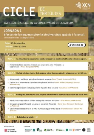 La Xarxa per a la Conservació de la Natura ha organitzat un cicle de tres tertúlies per debatre els efectes de la sequera sobre la biodiversitat, explorar estratègies d’adaptació i mitigació i analitzar com la ciència ciutadana està cobrant rellevància per l’avaluació de l’estat de la biodiversitat a Catalunya.