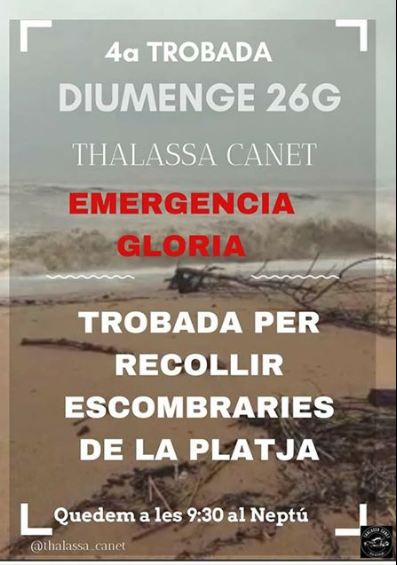Davant la destrossa generada per la llevantada Gloria fem una crida a tothom aquest diumenge per netejar la platja, volem que sigui transversal gent de totes les edats, de diferents entitats, etc. units en un objectiu comú, netejar la nostra platja de tota la brutícia perquè llueixi en tot el seu esplendor natural.