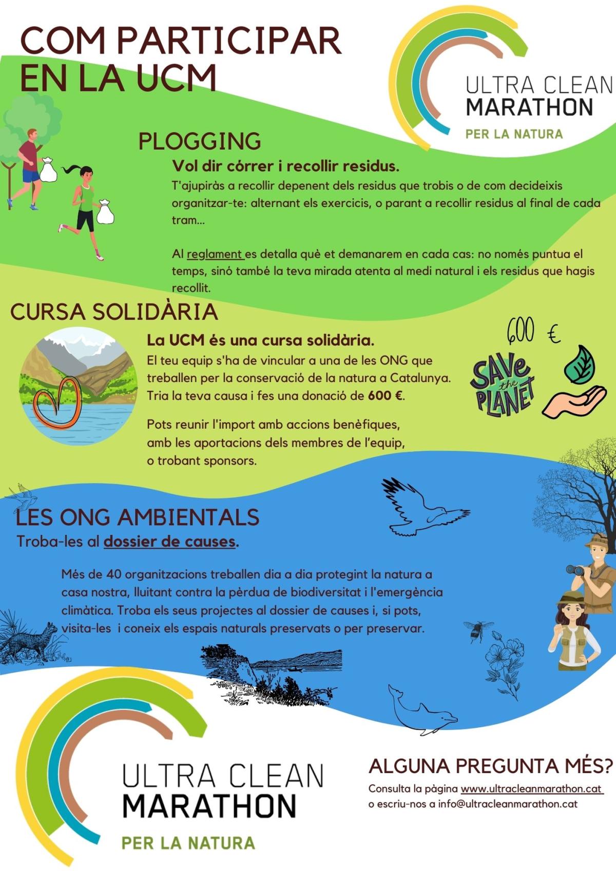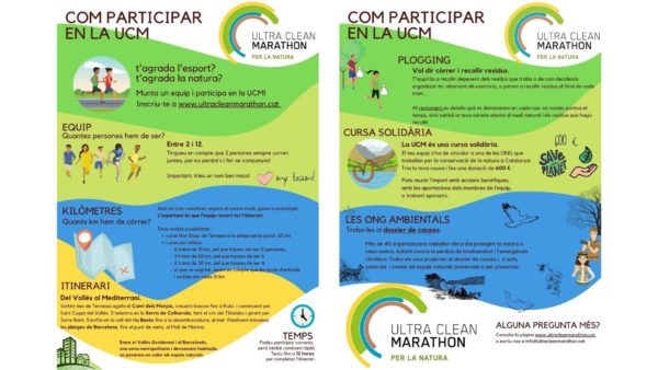La tercera edició de l’Ultra Clean Marathon consistirà en córrer 60 km, que pots córrer, en equip, en trams de 10 km fent relleus, retirar residus abandonats als espais naturals, i recollir donatius per a projectes de conservació de la natura i defensa del medi ambient.