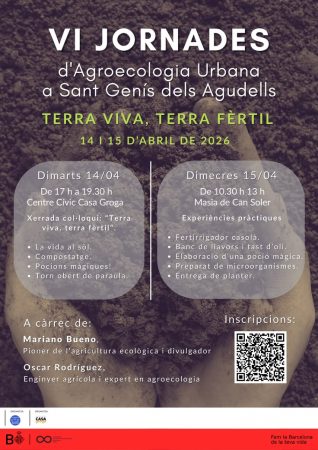 Les VI Jornades d’Agroecologia Urbana se celebraran sota el lema “Terra viva, terra fèrtil” els dies 14 i 15 d’abril de 2026 al barri de Sant Genís dels Agudells. La proposta està dedicada a aprofundir en el coneixement de la fertilitat del sòl i en les pràctiques agrícoles sostenibles aplicades a l’entorn urbà.