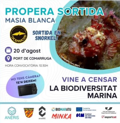 La FECDAS conjuntament amb el @oceanicos.2017 organitzem una sortida a la Reserva Marina de Masia Blanca el dimarts 20 d’agost per censar la biodiversitat marina del litoral català, dins del projecte ANERIS (@aneris_project). Una de les finalitats d’aquest projecte (liderat pel grup d’investigació EMBIMOS de l’Institut de Ciències del Mar – CSIC (@icm.csic)) és la d’acostar, connectar i fomentar la cultura marina envers la biodiversitat que conté el litoral català.