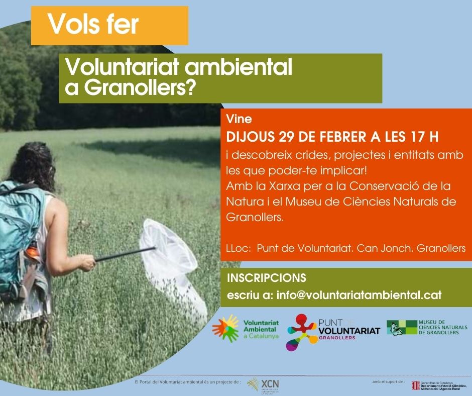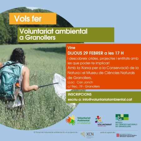 Vine a conèixer crides i iniciatives per fer voluntariat ambiental a Can Jonch, carrer Rec 19 de Granollers, a la xerrada de la Xarxa per a la Conservació de la Natura i el Museu de Ciències Naturals de Granollers i el Punt de Voluntariat de Granollers.