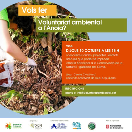 Vine dijous 10 d'octubre a les 18 h a descobrir el voluntariat ambiental a l'Anoia amb la XCN.