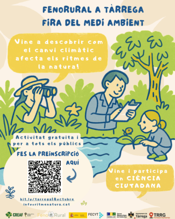 Durant tot el matí ens trobaràs al nostre estand, on podràs aprendre què és la fenologia, com funciona la ciència ciutadana i de quina manera les teves observacions poden contribuir a la recerca sobre el canvi climàtic. A més, descobriràs com utilitzar l’app iNaturalist i unir-te als projectes RitmeNatura FenoCat, impulsats pel CREAF i el Servei Meteorològic de Catalunya.