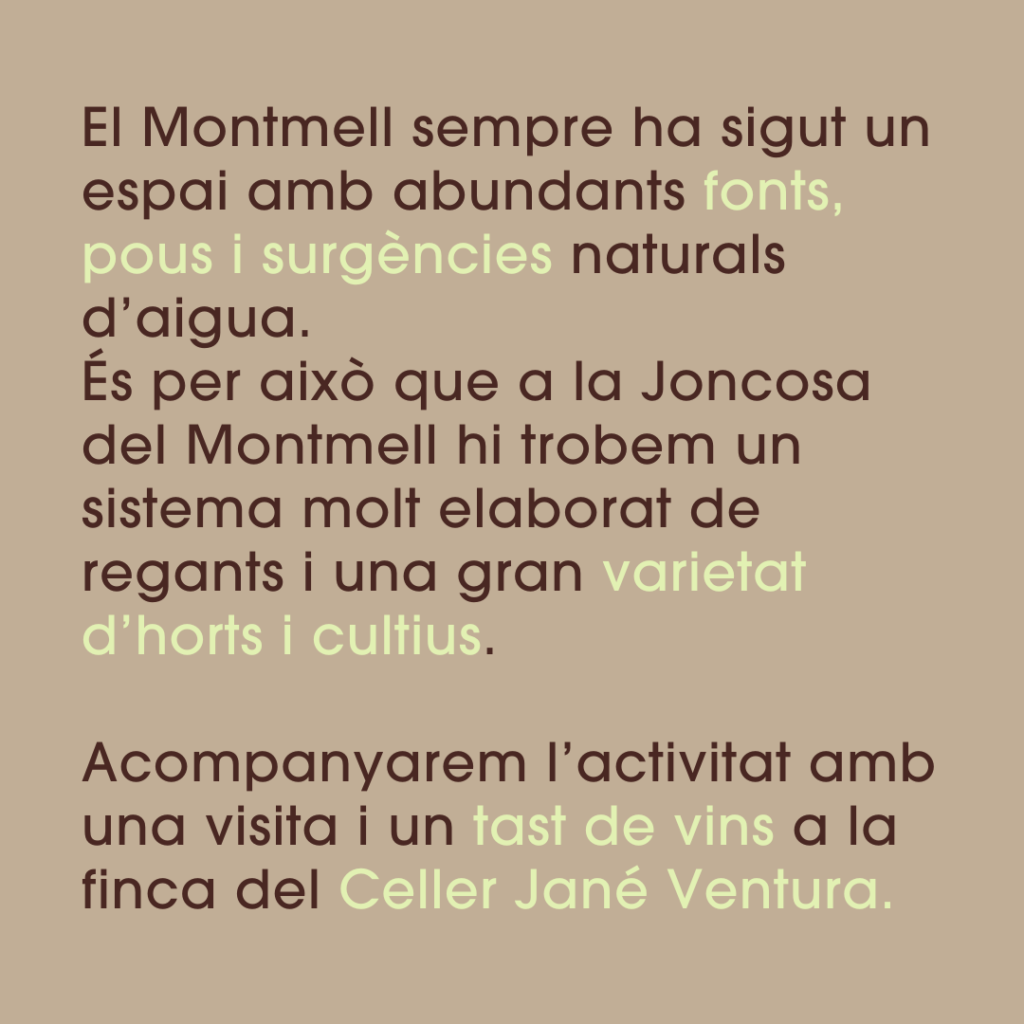 Vine a descobrir la història que amaguen els regants de la Joncosa del Montmell i acompanya'ns en un tast de vins de la terra!