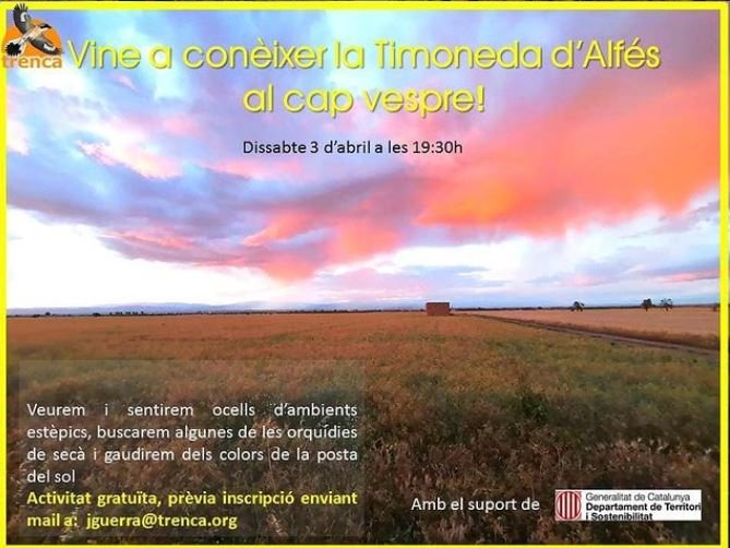 Sortida gratuïta per veure i sentir ela ocells estèpics, mirarem algunes de les orquidies de secà i gaudirem dels colors de la posta del sol.