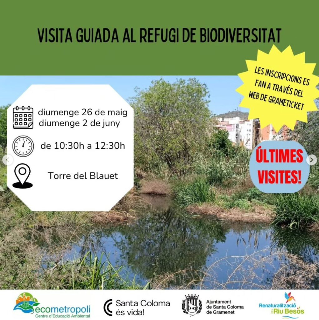 - El diumenge 26 teniu la penúltima oportunitat per a descobrir el Refugi de Biodiversitat del riu Besòs a través de la visita guiada de la mà d’en Javier Oliver, biòleg i naturalista; aquesta està enmarcada en el Dia Internacional de la Biodiversitat 2024 que és una iniciativa ambiciosa de les Nacions Unides en la qual s’impulsa la biodiversitat en tots els àmbits per a revertir el seu declivi! Us animem a recolzar doncs el Pla de Biodiversitat a través de la vostra participació!