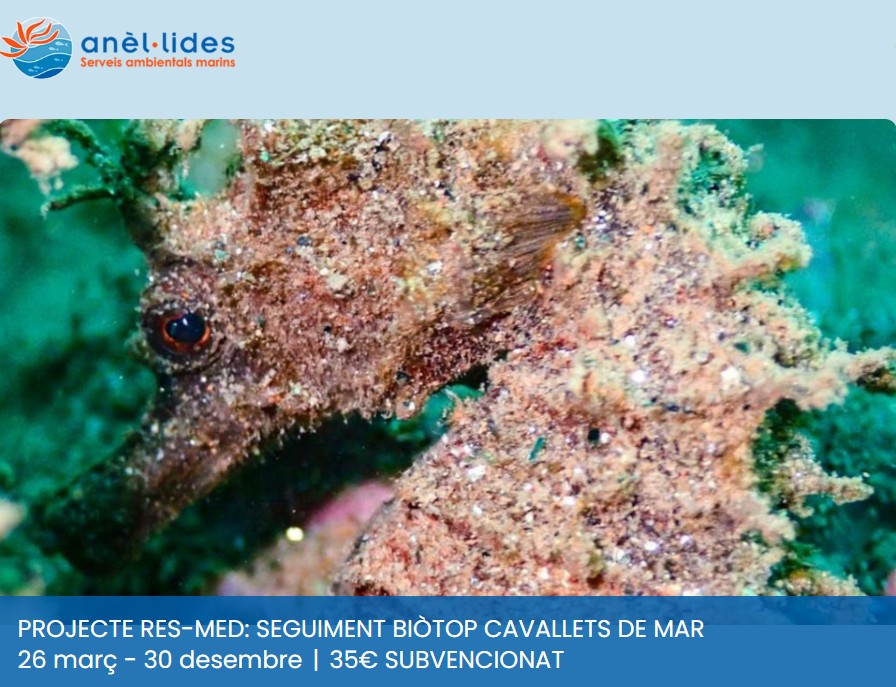 Vols ajudar-nos a fer el seguiment del biòtop per a cavallets de mar aquest 2026? Vine a les immersions científiques! Farem una formació prèvia que utilitzarem posteriorment a l’aigua.
