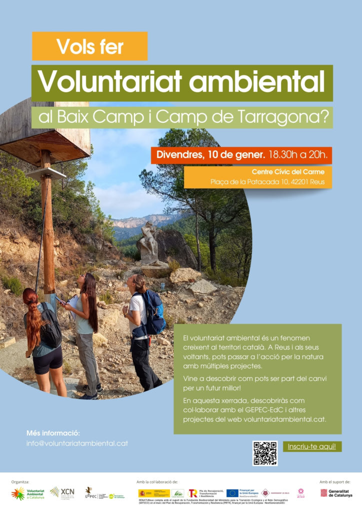 Vine a conèixer crides i iniciatives per fer voluntariat ambiental al Centre Cívic el Carme, de Reus, a la xerrada de la Xarxa per a la Conservació de la Natura i el GEPEC-EdC.