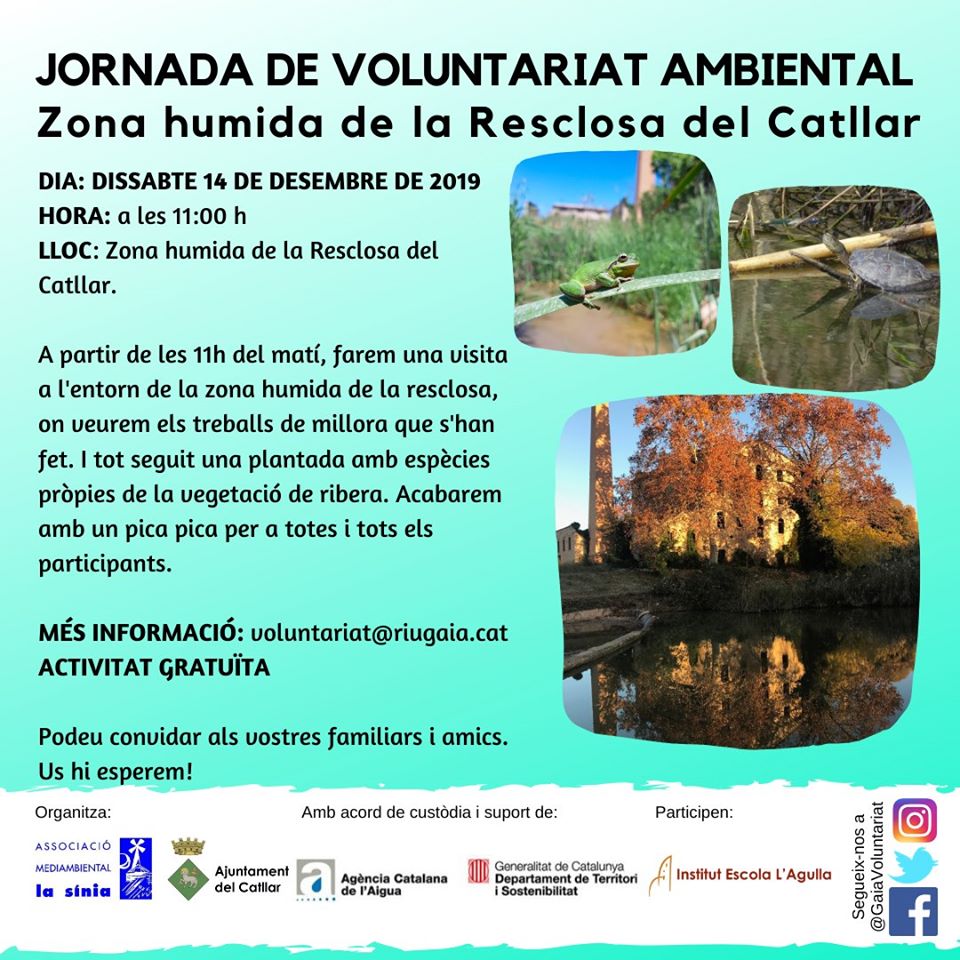 Us volem convidar a la propera #JORNADAdEVOLUNTARIATAMBIENTAL, aquest cop a la zona humida de la Resclosa del Catllar. Una jornada on veurem els treballs de millora i plantarem espècies autòctones.