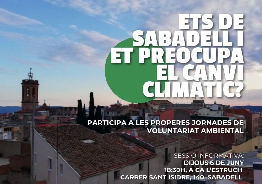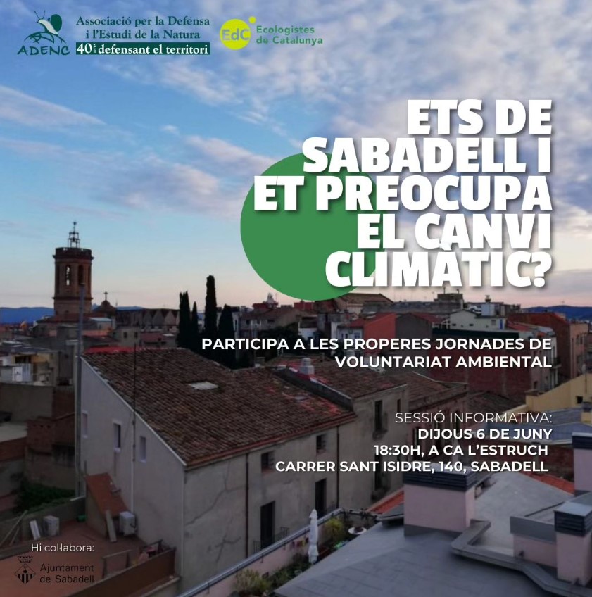 Ets de Sabadell i et preocupa el canvi climàtic? Vine a la sessió de presentació on explicarem els projectes de voluntariat ambiental sobre ecologia urbana que tenim entre mans! Tractarem i estudiarem temes sobre la biodiversitat urbana, la qualitat de l'aire i la temperatura? a la ciutat de Sabadell