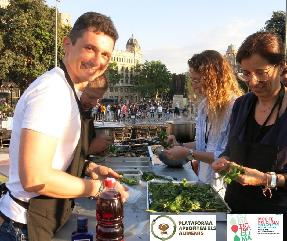 Participa en la festa Mou-te pel Clima fent voluntariat en el dinar d'aprofitament contra el malbaratment alimentari, just abans de l'arribada dels corredors de l'Ultra Clean Martahon