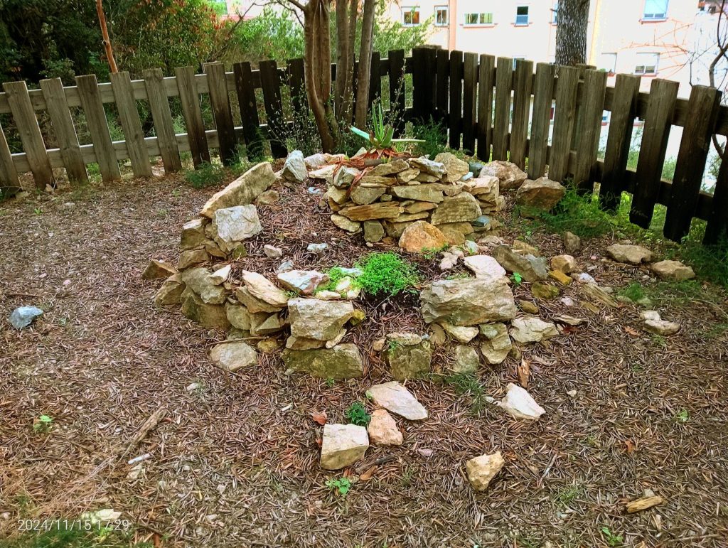 També rehabilitarem uns metres de rocalla per al proper desplaçament del viver de plantes autòctones de Depana. Iniciarem el projecte d’arranjar-la i proveir-la de la vegetació adient. Proporcionant un microhàbitat ben estructurat i afavorint així la biodiversitat de Bosc Turull. Aprofitarem la presència d’en Marc Martínez per poder rebre el seu consell d’expert.