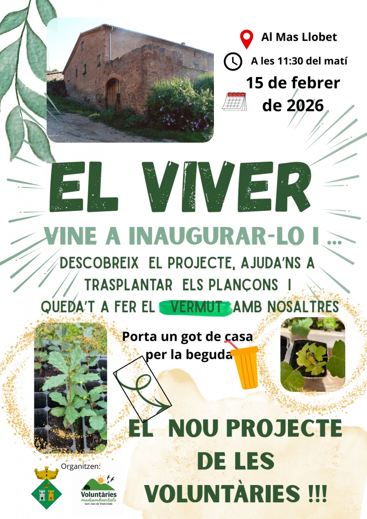 El dia 15 de febrer, a les 11:30, ens trobarem totes les persones voluntàries que vulguin venir en un espai del Mas Llobet de Sant Joan de Vilatorrada per plantar en torretes els plançons que tenim sembrats en tetrabrics o safates. D’aquest manera, s’iniciarà un nou projecte que duran a terme l’Associació Voluntàries Mediambientals i l’Ajuntament de Sant Joan de Vilatorrada, aquest nou projecte consisteix en la creació d’un viver que contindrà diferents espècies arbòries, arbustives i herbàcies, en total unes 45 espècies que seran custodiades en el un espai del Mas Llobet (una de les masies més antigues del poble)  fins el moment de passar a formar part d’algun escocell buit o d’algun nou espai verd per a Sant Joan de Vilatorrada.