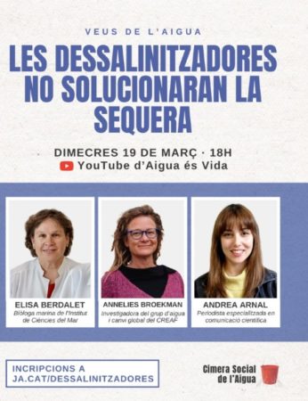 Ens acompanyaran les autores de l’article titulat “Les dessalinitzadores no solucionaran la sequera”, amb el mateix nom que la sessió.