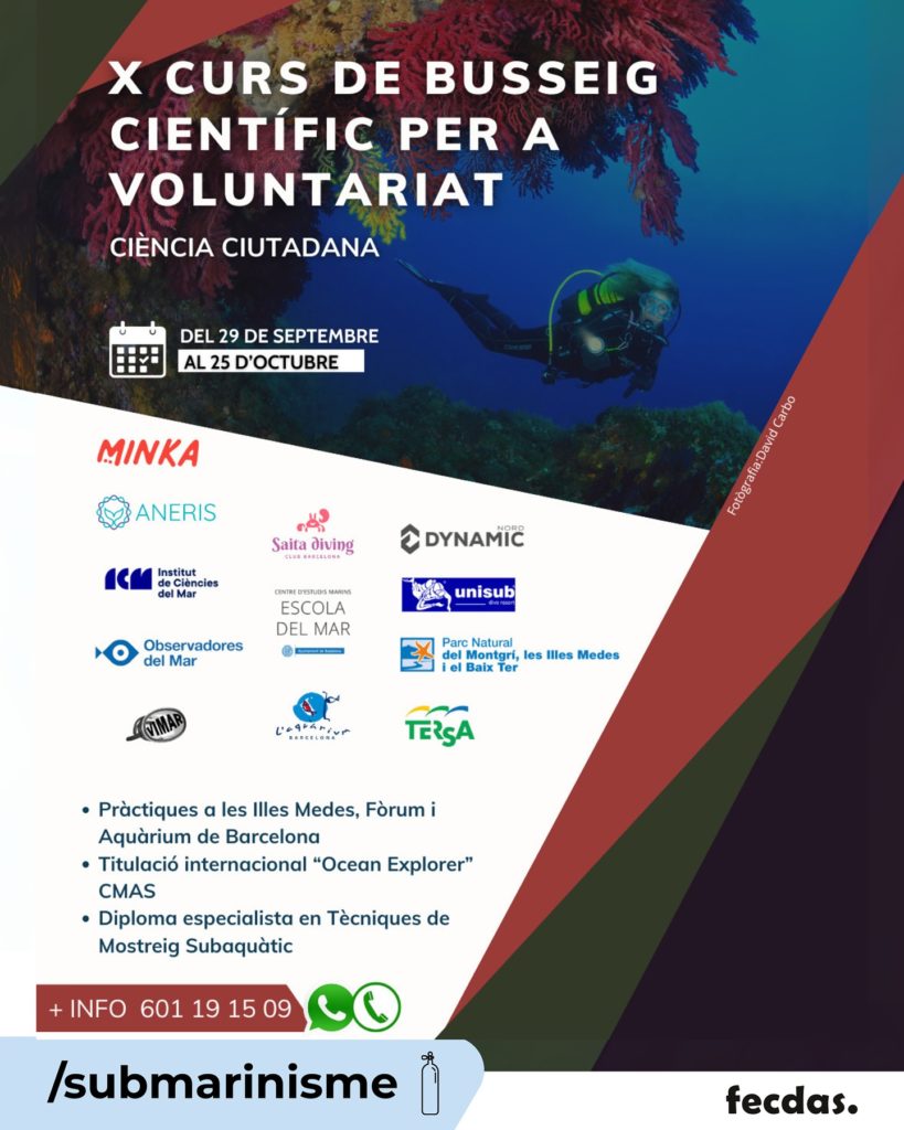 Amb aquest curs aprendràs tècniques de recollida d’informació i mostreig per a participar en accions de ciència ciutadana i en estudis científics relacionats amb la biologia i l’ecologia marina.