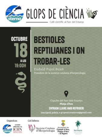Aquest mes d’octubre ens veiem amb una segona entrega d’una saga que segur que no us deixarà indiferents: Bestioles reptilianes i on trobar-les, a càrrec d’Eudald Pujol, president de la Societat Catalana d’Herpetologia.