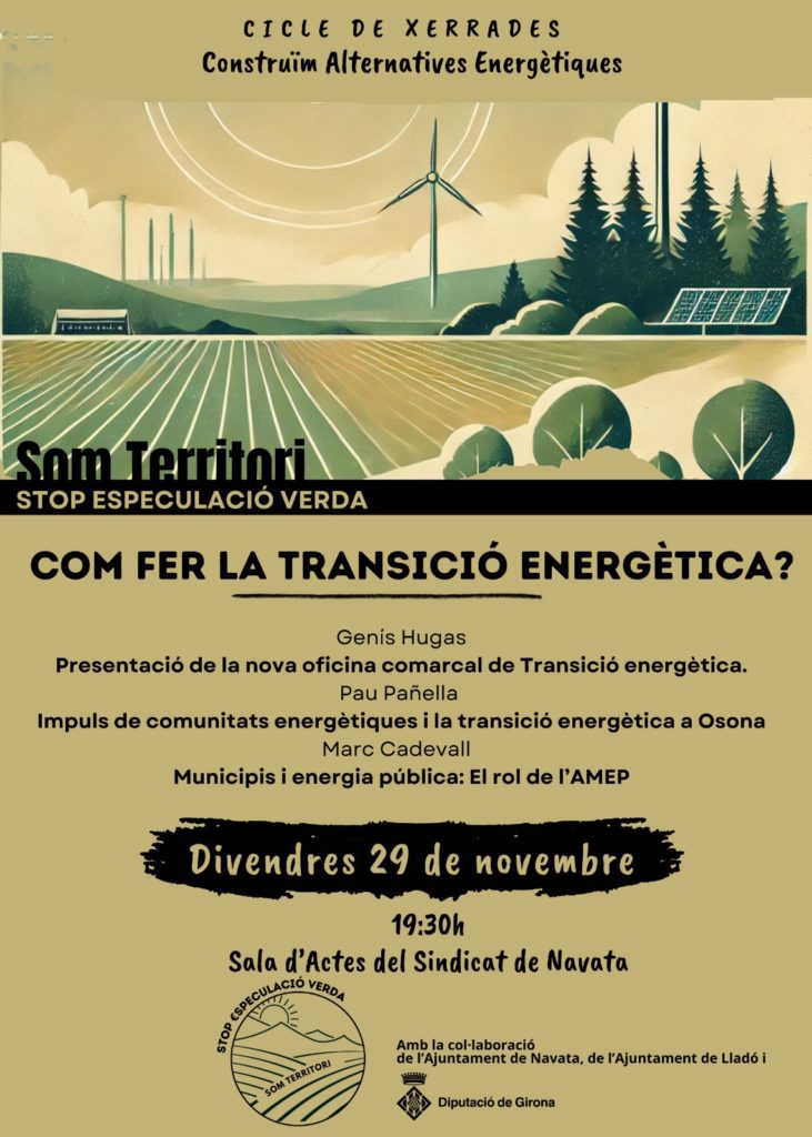 Aquest divendres 29 de novembre us esperem per explicar-vos com plantejar la transició energètica en contraoposició als grans macroparcs que ens volen imposar