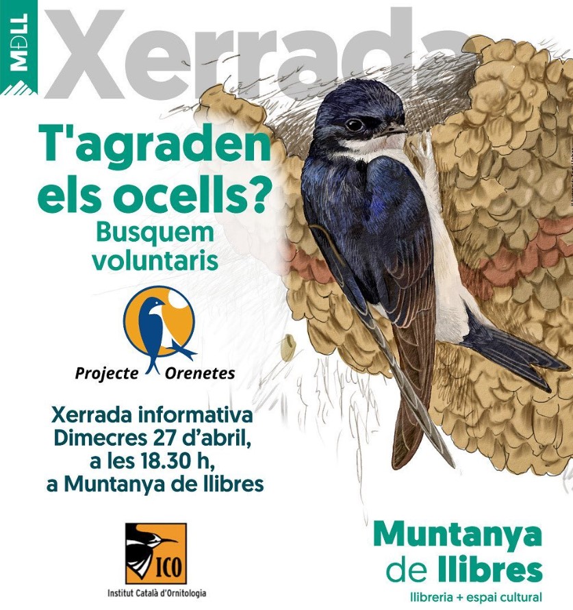 Vols participar al Projecte Orenetes? Vine a la xerrada informativa dimecres 27 a la Llibreria Muntaya de llibres a Vic.