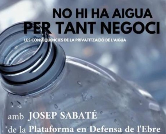Aquest dijous 11 de juliol a les 18.30 comptarem amb Josep Sabaté, de la Plataforam en Defensa de l’Ebre per parlar sobre els perills i conseqüències de fer de l’aigua un negoci.