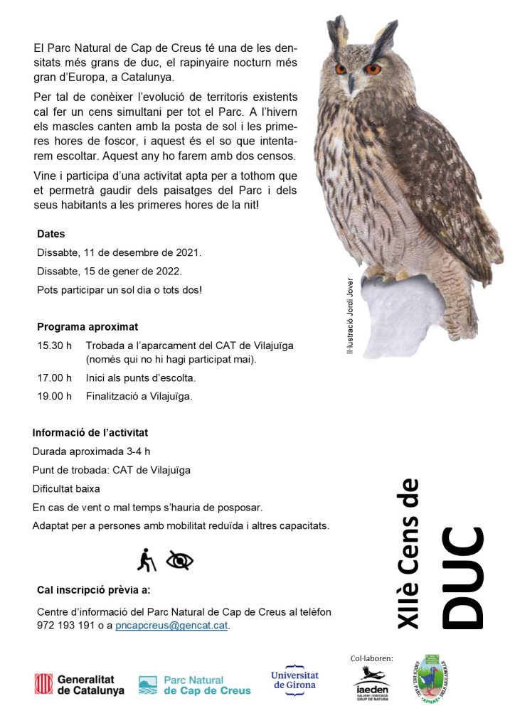 El Parc Natural de Cap de Creus té una de les densitats més gran de duc a Catalunya. Per conèixer com evolucionen els territoris es faran censos simultanis a tot el Parc.