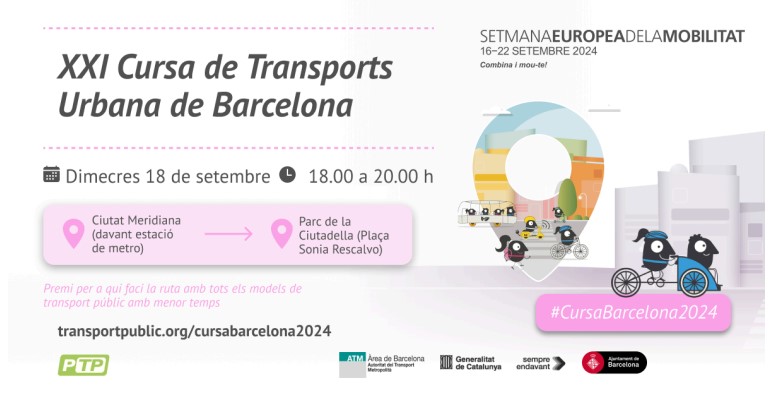 El dia 18 de setembre de 19.00 a 20.30 h, la PTP, juntament amb l’ATM de Barcelona, i en el marc de la Setmana Europea de la Mobilitat, celebra la XXI Cursa de Transports Urbana de Barcelona. Un any més, recuperem aquesta activitat i, com sempre, volem que participar-hi sigui una experiència única.