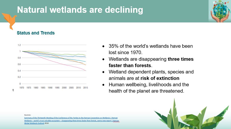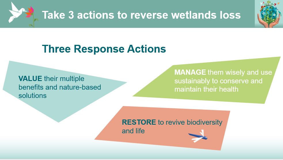 Enguany es continuen aportant aquestes dades. Però més que mai s’urgeix a passar a l’acció per preservar els aiguamolls que existeixen, i a restaurar els que es van perdre. La crida a l’acció clara: Act for Wetlands. Aquest Dia Mundial que s’incorpora al pla d’acció per l’aigua i per la natura de Nacions Unides. Es demana inversió de capital financer, humà i polític per salvar les zones humides del món de la desaparició i per restaurar les que hem degradat.