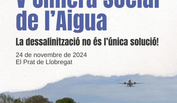 Cimera social de l’aigua: la dessalinització no és la unica solució! diumenge 24 de novembre 2024 El Prat de Llobregat Formació Voluntariat Entitat: Aigua és vida
