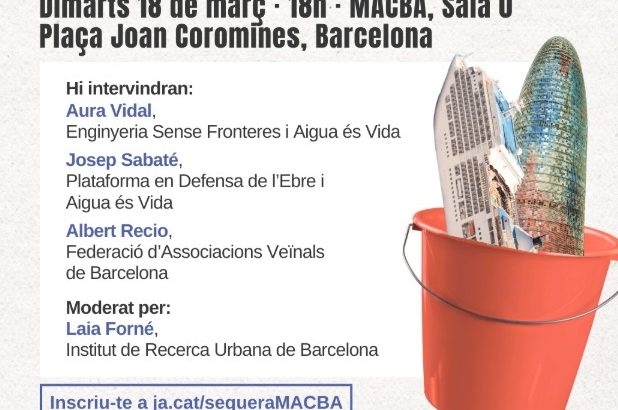 Debat: Els deures urgents de Barcelona en temps de sequera dimarts 18 de març 2025 Barcelona Formació Entitat: Aigua és vida