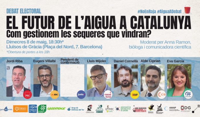 Debat electoral:”El futur de l’aigua a Catalunya” dimecres 8 de maig 2024 Barcelona Formació Entitat: Aigua és vida