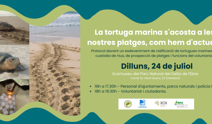 Participa en la vigilància del niu de tortuga careta al Delta de l’Ebre! dilluns 24 de juliol - dilluns 14 d’agost 2023 Parc Natural del Delta de l'Ebre Voluntariat als espais naturals protegits Voluntariat Entitat: Associació de Voluntaris del Parc Natural del Delta de l'Ebre