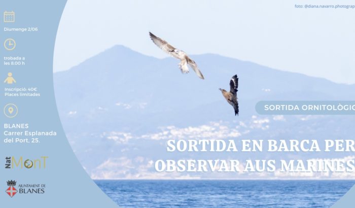 Sortida ornitològica per a observar ocells de mar endins a Blanes diumenge 2 de juny 2024 Blanes Formació Voluntariat Entitat: NatMont - Associació Naturalistes del Montnegre i la Tordera