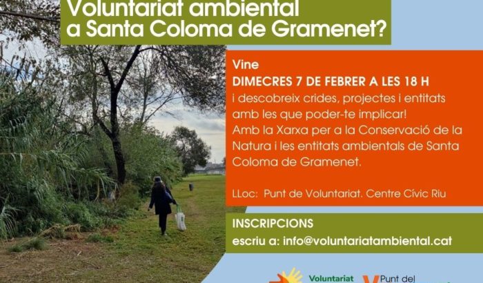 Xerrada: Vols fer voluntariat ambiental a Barcelona? dimecres 21 de febrer 2024 Barcelona Voluntariat Entitat: Xarxa per a la Conservació de la Natura