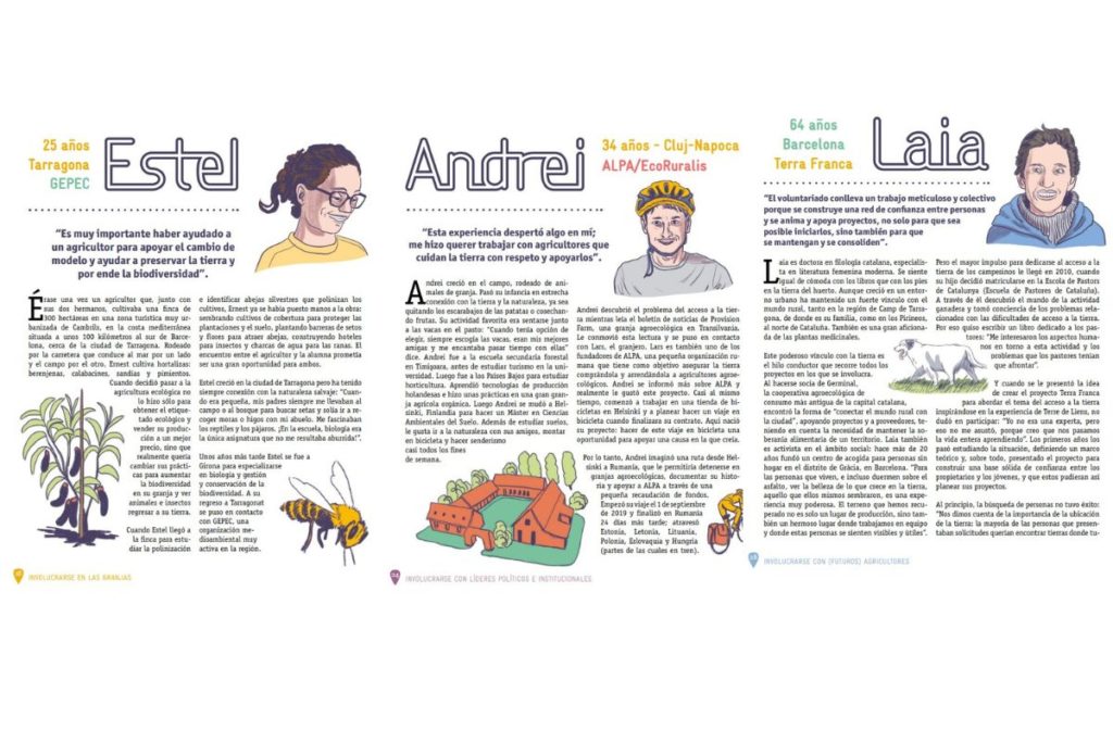 “Cuidando la tierra, retrato de voluntarios y voluntarias comprometidos con la tierra y la agroecologia” és un llibre que presenta 16 persones d’arreu d’Europa, 3 catalanes, que aporten els seus coneixements, temps i energia per preservar les terres de conreu i donar suport als nous agricultors agroecològics.